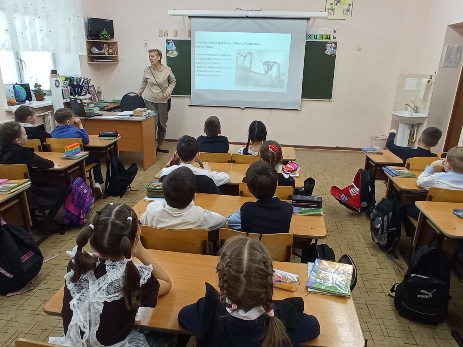 Очередное занятие из цикла «Разговоры о важном» 8 апреля прошло в школе в преддверии Дня космонавтики. Тема урока звучит «Я вижу Землю! Это так красиво!». Эти слова вскоре после старта произнес первый человек, покоривший космос, Герой Советского Союза Юрий Гагарин, которому в марте этого года исполнилось бы 90 лет.