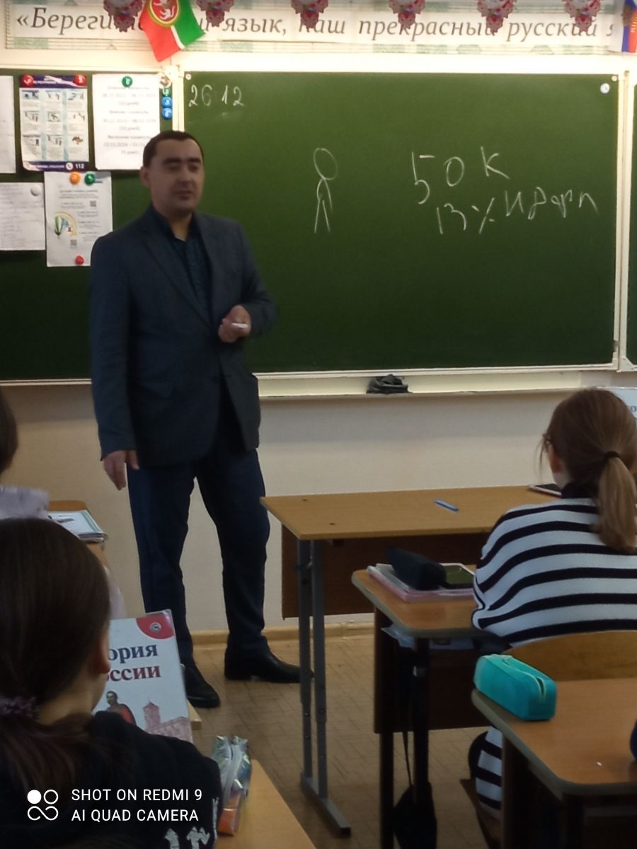 Сегодня в 9 классе прошел открытый урок в рамках «Единого дня пенсионной грамотности». Учитель истории и обществознания Рухин Ф.Ф. доступной форме рассказал ребятам о том, что такое пенсионные права, как они формируются и от чего зависят; почему нужно заботится о будущей пенсии смолоду, почему важно получать «белую зарплату». Обучающиеся узнали о новых правилах формирования пенсионных прав граждан, которые в полном объеме коснуться именно сегодняшней молодежи. Так же были освещены вопросы, с которыми сегодняшние обучающиеся коснутся непосредственно после окончания школы, а именно, как распорядится накопительной частью своей будущей пенсии. Смотрели видеоролик, отвечали на вопросы.Бүген 9 нчы сыйныфта «Бердәм пенсия грамоталылыгы көне" кысаларында ачык дәрес узды. Тарих һәм җәмгыять белеме укытучысы Рухин Ф.Ф. балаларга пенсия хокукларының нәрсә икәнлеге, алар ничек формалаша һәм нәрсәгә бәйле булуы турында сөйләде; ни өчен яшьләргә булачак пенсия турында кайгыртырга кирәк, ни өчен «ак хезмәт хакы» алу мөһим. Укучылар гражданнарның пенсия хокукларын формалаштыруның яңа кагыйдәләре турында белделәр, алар бүгенге яшьләргә тулысынча кагылырга тиеш. Шулай ук бүгенге укучыларның мәктәпне тәмамлаганнан соң ук кагылачак мәсьәләләре дә яктыртылды, ягъни булачак пенсияләренең тупланма өлешен ничек кулланачагы. Видео карадылар, сорауларга җавап бирделәр.