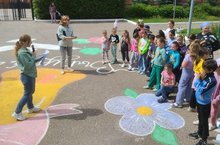 В этот день прошел и конкурс рисунков на асфальте "Я художник, я так вижу". Тема для рисования была предложена "Мой край родной - частица Родины большой". Юные художники мечтали, фантазировали и воплощали задумки на асфальте.