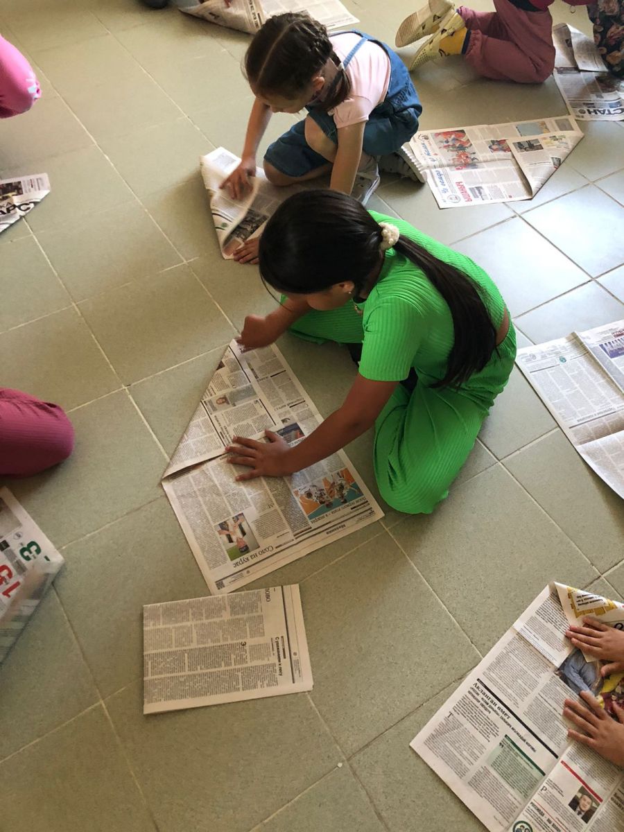 Сегодня для вопитанников пришкольного лагеря "Серле утрау" провели мастер-класс по изготовлению пилотки из газеты.