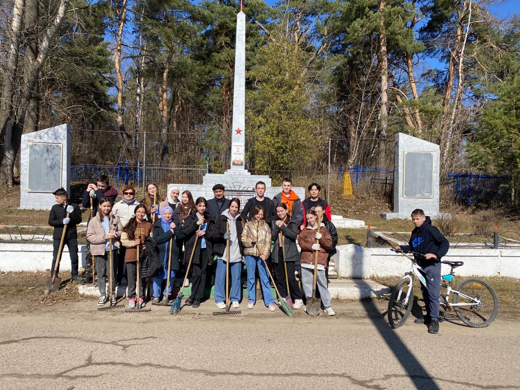 Апрель-традиционное время наведения чистоты и порядка, а субботники -старая добрая традиция. Сегодня школьники и учителя привели порядок школьную терриорию после долгой зимы. Также было очищена от мусора и сухой травы территория обелиска. Апрель-чисталык һәм тәртип урнаштыруның традицион вакыты, ә өмәләр-матур традиция. Бүген мәктәп укучылары һәм укытучылар озын кыштан соң мәктәп территориясен тәртипкә китерделәр. Шулай ук обелиск территориясе чүп-чардан һәм коры үләннән чистартылды.