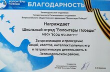 14 мая прошёл форум "Волонтеры Победы", в рамках которого были подведены итоги работы школьных отрядов. Волонтерский отряд школы награждён благодарственным письмом за проведения акций и мероприятий.