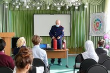 В рамках Всероссийского урока по ОБЖ проведена встреча с сотрудниками ВДПО. /Рәсәй күләмендә үткәрелә торган Иминлек саклау нигезләре дәресендә ВДПО хезмәткәрләре белән очрашу.