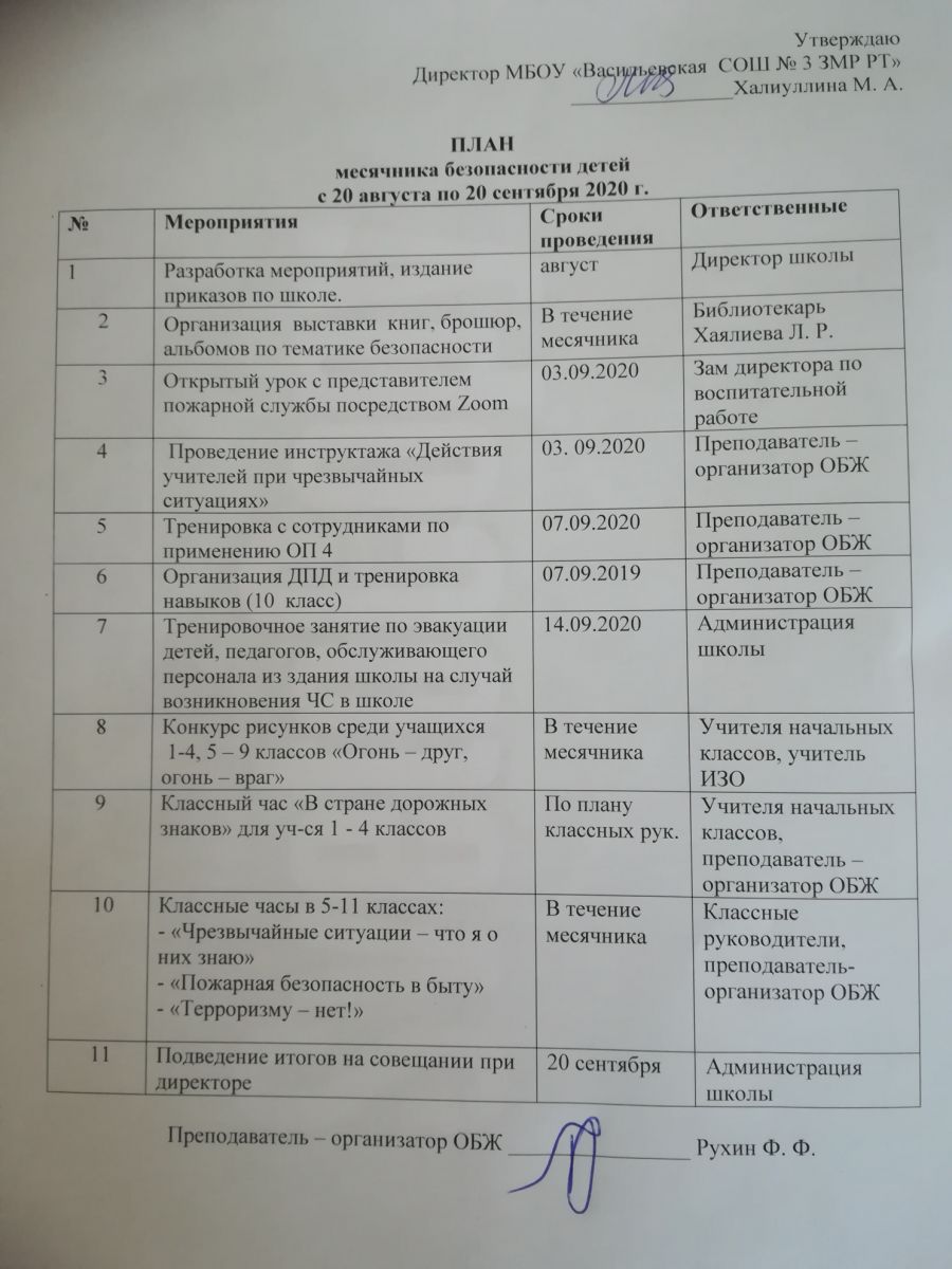 План месячника безопасности детей с 20 августа по 20 сентября 2020 года.