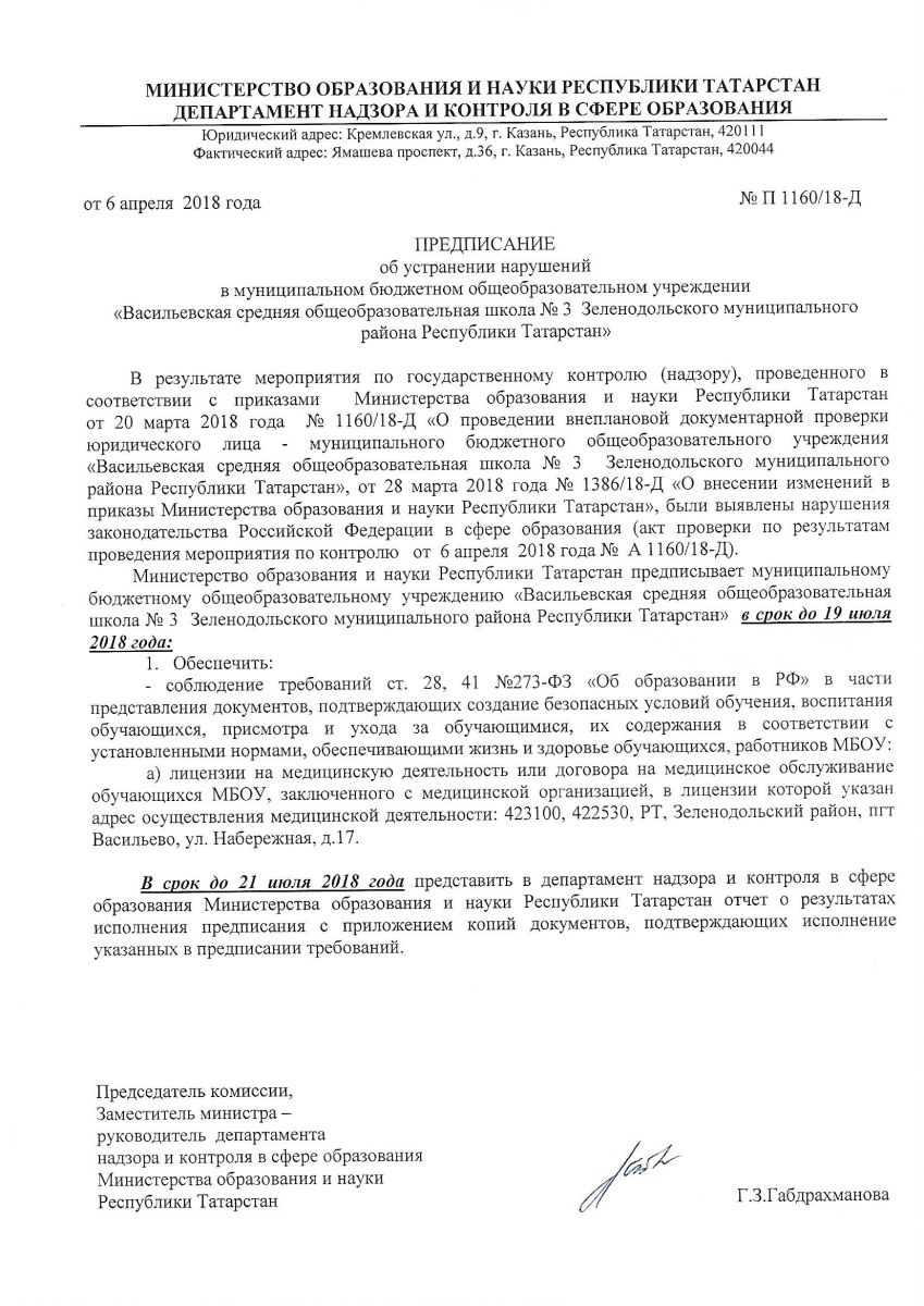 Предписания органов, осуществляющих государственный контроль в сфере образования, отчетов об исполнении таких предписаний, исполнения предписания или признания его недействительным (при наличии) (копия).