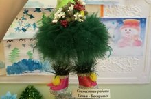 Коллективные работы детей старшей и подготовительной группы, в номинациях: "Ёлочка новогодняя". "Ёлочная игрушка" Шакирова Камила, Храмов Роман. "Новогоднее панно" Евграфов Азиз, Райков Саид, Хабибуллин Зиннур. (педагог: Шарафутдинова В.Н)