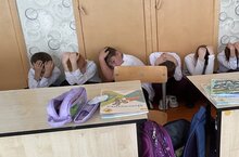 Учащиеся и учителя школы повторили правила поведения при угрозе вооружённого нападения на школу. -