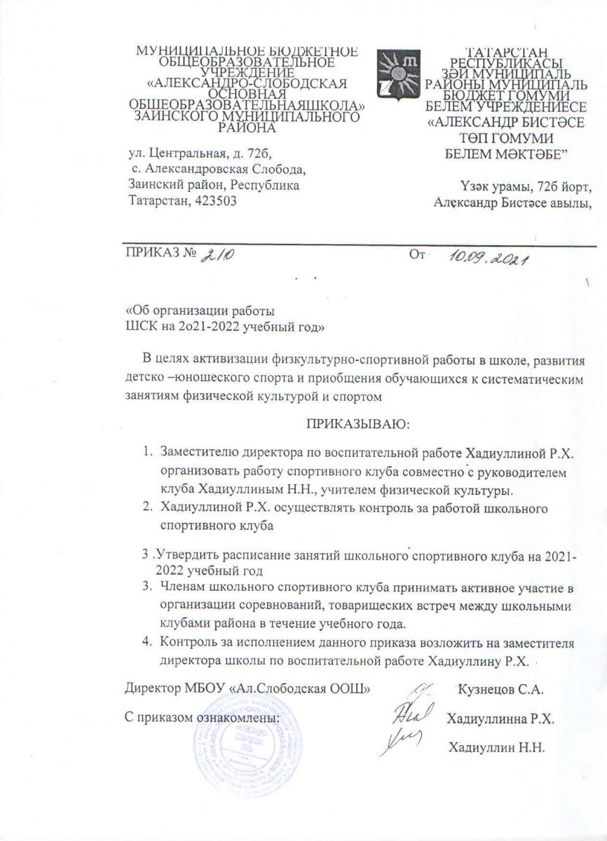 Паспорт школьного спортивного клуба МБОУ «Александро-Слободская ООШ» «ОЛИМП»