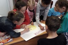 В лагере прошел день поэзии, посвященный 220 - летию А.С.Пушкина. Воспитанники пришкольного лагеря рисовали русунки по произведениям знаменитого поэта, участвовали в викторине и читали стихотворения А.С.Пушкина.
