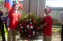 День Победы. 74 раз учащиеся школы приходят к мемориалу Памяти для возложения венка в честь павших воинов земляков. Вечная слава павшим в бою.