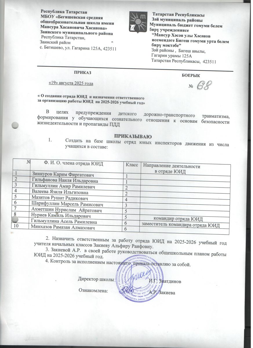 Приказ о создании отряда ЮИД на 2025-2026 учебный год