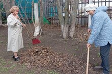 В рамках экологического весеннего двухмесячника, территории школы и детского сада очищаются от прошлогодней листвы, травы.