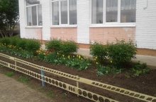 На школьных клумбах зацвели первые цветы - тюльпаны, ирисы.