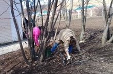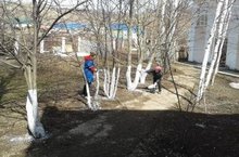 Сегодня в рамках экологического средника была убрана школьная территория, произведена обрезка деревьев, побелка деревьев.