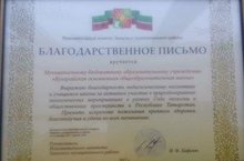 За активное участие в природоохранных экологических мероприятиях в рамках Года экологии наша школа была награждена Благодарственным письмом Исполнительного комитета Заинского муниципального района.