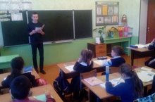 Активист школы, ученик 9 класса Калинин Глеб провел беседу с учащимися начальных классов на тему "Дети с сети Интернет"