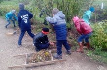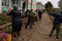 Сегоня в школе прошел субботник по очистке территории от пожелтевшей травы и опавших листьев. Заодно учащиеся старших классов вскопали и подготовили к следующей весне клумбы.