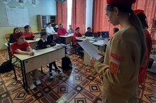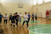 В рамках месячника гражданско-патриотического воспитания, юнармейцы школы учат учащихся младших классов игре "Баскетбол".