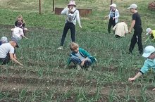 Сегодня участниками лагеря труда и отдыха "Бригантина" был организован трудовой десант по прополке грядок и поливке цветов.