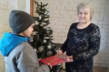 Участники отряда "Самостоятельные дети" поздравили учителя , ветерана педагогического труда Валентину Федоровну Ц. с наступающим Новым годом.