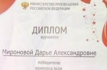 Поздравляем Миронову Дарью, которая стала победителем конкурса эссе "Письмо на фронт"