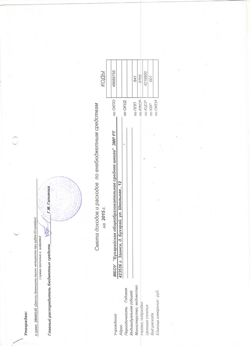 Смета доходов и расходов по внебюджетным средствам на 2015 год стр.1 стр.2