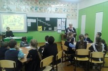 С учащимися встретился Иванов Вадим Валентинович Начальник отделения профилактики Альметьевского территориального управления в городе Заинск. Вадим Валентинович рассказал о правилах поведения на дороге, о важности светоотражающих элементов в одежде.