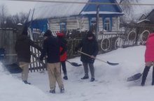 Юнармейцы школы вышли на помощь в очистке дворов от снега труженикам тыла и пожилым людям.
