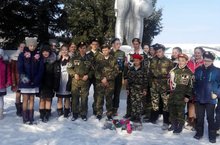 Ватанны саклаучылар көне уңаеннан укучылар һәйкәлне кардан чистаттылар һәм чәчәкләр куйдылар