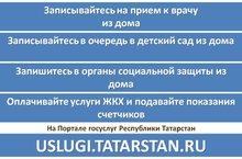 Государственные услуги в Республике Татарстан предоставляются населению и предпринимателям в полном объеме.Раньше, чтобы в Республике Татарстан получить конкретную услугу, необходимо было посещать специальные государственные учреждения, подолгу дожидаться своей очереди, собирать множество разнообразных документов. Теперь все стало намного проще: государственные услуги в Республике Татарстан сегодня предоставляются непосредственно в электронном виде.Услуги населению предоставляемы через госуслуги РТ (uslugi.tatarstan.ru):- ЖКХ – введение показателей потребленной энергии, воды, газа со счетчиков на сайте, оформление субсидий, погашение задолженностей за пользование коммунальными удобствами (в том числе и через личный кабинет госуслуг РТ);- СВЯЗЬ – оплата услуг телевидения, интернет-провайдеров, домашнего телефона, мобильного;- ДЕТСКИЕ САДЫ – постановка ребенка в очередь, проверка статуса заявления, оплата обслуживания;- ОБРАЗОВАНИЕ – оплата кружков и секций, анализ оценивания, подача заявлений о вступлении, переводе на конкретную форму обучения и т.д.;- УХОД ЗА ДЕТЬМИ – оформление различных пособий, предусмотренных текущим законодательством, опека, усыновление и т.п.;- СИСТЕМА ЗДРАВООХРАНЕНИЯ – запись на прием к врачу, консультации, справочная информация;- подача прошения о предоставлении земельного участка многодетным семьямпроверка статуса заявления в МФЦ;- предварительная запись на прием в БТИ;Обращаем внимание, что подача заявлений на вышеуказанные государственные услуги через Портал доступна только после регистрации в Единой системе идентификации и авторизации.Более подробную информацию о преимуществах получения электронных услуг можно получить из информационных листовок и видеороликов. -