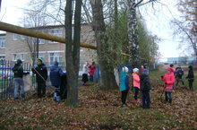 Каникулга китәр алдыннан барлык сыйныф укучылары,укытучылар мәктәпнең эчке һәм тышкы ягын яфраклардан арындырдылар.