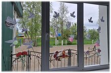 Юнармейцы, ученики нашей школы тоже присоединились к этой акции и украсили окна школы главными символами Победы.