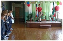 Новая учебная неделя началась с поднятия государственных флагов Российской Федерации и Республики Татарстан под гимном.