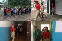 Юнармейцы отряда имени Газинура Гафиатуллина провели тренировку по эвакуации. Во время эвакуации они показали учащимся где находятся запасные выходы школы.