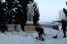Юнармейцы отряда имени Газинура Гафиатуллина, героя Советского союза, участника Великой Отечественной войны, проводят в порядок памятник Воину-освободителю.