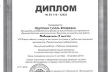 Поздравляем Яруллину Г.Ф., педагога отделения изобразительного искусства, ставшую победителем (1 место) Vlll Всероссийского конкурса авторских программ и учебно-методических материалов «Педагогическая лаборатория».