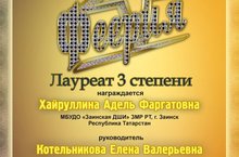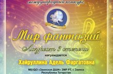 Поздравляем Лауреата 3 степени Международного конкурса «Мир фантазий» Хайруллину Адель и педагога Котельникову Елену Валерьевну с заслуженной победой! Молодцы!
