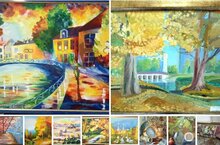 В детской школе искусств проходит выставка работ обучающихся отделения изобразительного искусства "Осенний вернисаж", посвященная красоте русской осени и демонстрирует яркие картины с золотыми листьями, спокойными природными видами и свежестью осеннего воздуха.