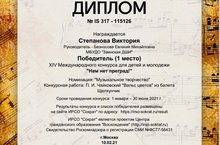 Учащаяся отделения музыкального искусства Степанова В. приняла активное участие в ⅩIV Международном конкурсе для детей и молодежи «Нам нет преград!» и стала победителем – I место (ПДО Безносова Е.М.). Поздравляем!!!