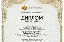 Победителями данного конкурса стали : Дятлова Зарина –Диплом ⅠⅠ степени, Большакова София –Диплом ⅠⅠⅠ степени (педагог Васильева В.Н.). Поздравляем!!!