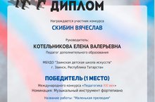 Учащийся отделения музыкального искусства Скибин Вячеслав принял активное участие в Международном конкурсе "Педагогика ⅩⅩⅠ век" и стал победителем – I место (ПДО Котельникова Е.В.). Поздравляем!!!