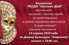 15 апреля 2019 года коллектив школы искусств принял участие в смотре художественной самодеятельности в рамках фестиваля театрального искусства «В мире театра» . Царство гармонии и красоты, в которое окунулись зрители на концерте, еще долго будет дарить тепло их душам.