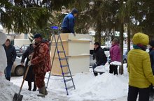 Изготовления снежных фигур около здания ДШИ.