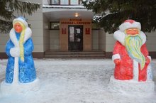 Коллектив школы искусств украсил свою территорию ледяными скульптурами Деда Мороза и Снегурочки.