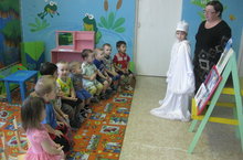 17 декабря в первой младшей группе прошло комплексное занятие «Здравствуй Зимушка - Зима». В гости к ребятам пришла Зима (воспитанница подготовительной группы). Она рассказала малышам о приметах зимы и о главном зимнем празднике – Новый год. Дети рассматривали картины, наблюдали за снегом. В конце все вместе решили украсить свою группу новогодними гирляндами, которые нарисовали сами.
