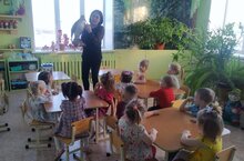 24 декабря в нашем детском саду прошел Новогодний утренник в подготовительной группе. В программе были танцы, песни, игры с героями, ребята рассказывали стихотворения. Детей восхищала сама атмосфера праздника и волшебства. Разноцветные, сверкающие гирлянды и ярко украшенная ёлочка принесли детям ощущение чуда. И конечно же к нам приходили в гости Дед Мороз с его неизменной юной спутницей Снегурочкой, проказница Баба Яга. После представления все дети получили долгожданные подарки от Деда Мороза!