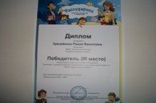 ВОСПИТАТЕЛЬ УРАЗАЙКИНА Р.В. СТАЛА ТРИЖДЫ ДИПЛОМАНТОМ ВО ВСЕРОССИЙСКОМ ТВОРЧЕСКОМ КОНКУРСЕ "РАССУДАРИКИ" В НОМИНАЦИЯХ "ПЕДАГОГИЧЕСКИЕ ПРОЕКТЫ" И "ТВОРЧЕСТВО БЕЗ ГРАНИЦ" С РАБОТАМИ "БӘЛЛҮР БИШЕК", "КОГДА СТАРОСТЬ В РАДОСТЬ", "ЗИМНЯЯ СКАЗКА".