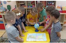 Сегодня воспитанники подготовительной группы познакомились с моделью нашей планеты- глобусом????. Рассмотрев глобус, ребята узнали почему он разного цвета. Узнали где моря и окены, почему суша окрашена в разные цвета, потому что на земле есть горы, леса и пустыни, а также нашли нашу страну - Россию.
