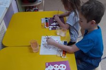 Сегодня воспитанники старшей группы рисовали снежинки нетрадиционной техникой. Снежинки бывают самыми разнообразными из бумаги, из ткани. А дети сделали снежинку из клея и манной крупы. Рисование нетрадиционными техниками открывают широкий простор для детской фантазии, дает ребенку возможность увлечься творчеством, развивать воображение, проявить самостоятельность и инициативу, выразить свою индивидуальность.