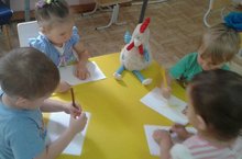 РИСОВАНИЕ В ПЕРВОЙ МЛАДШЕЙ ГРУППЕ ПРИВЛЕКАЕТ МАЛЫШЕЙ ТЕМ, ЧТО ОНИ САМОСТОЯТЕЛЬНО СОЗДАЮТ ЧТО-ТО КРАСИВОЕ И ОРИГИНАЛЬНОЕ. У ДЕТЕЙ НАКАПЛИВАЕТСЯ И РАСШИРЯЕТСЯ ЛИЧНЫЙ ОПЫТ. СЕГОДНЯ ВОСПИТАТЕЛЬ ФАРДИЕВА М.М. ПРИОБЩАЛА РЕБЯТ К АКТИВНОЙ ИЗОБРАЗИТЕЛЬНОЙ ДЕЯТЕЛЬНОСТИ. РЕБЯТА РИСОВАЛИ ЗЕРНЫШКИ ДЛЯ ПЕТУШКА.
